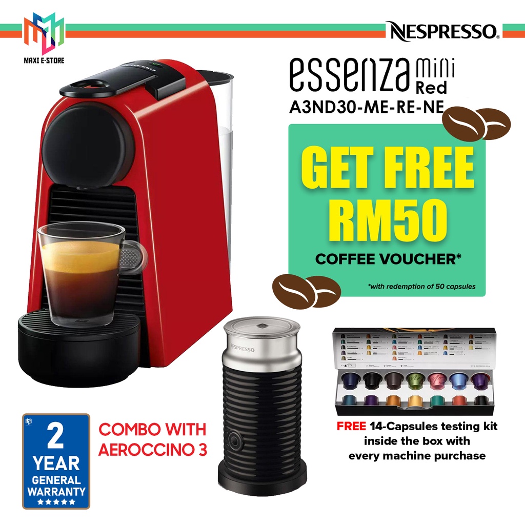 Combo Nespresso A3nd30 Me Re Ne Essenza Mini Capsule Coffee Pod Machine Red D30 Me Re Ne Aeroccino3 Milk Frother Shopee Malaysia
